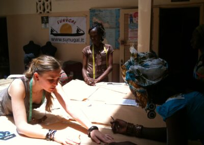 Im März 2013 wurde ich von der Hilfsorganisation artefatto-onlus kontaktiert, als Designerin eine Kollektion für ein Hilfsprojekt in Dakar, Senegal zu zeichnen. Bei diesem Projekt ging es um den Aufbau eines Modelabels bzw. einer Produktionsfirma mit ca. 14 Frauen, welche eine Schneiderschule für Mädchen besuchten und für das Projekt ausgewählt wurden. Der erste Schritt war nun nach Senegal zu reisen, die Mädchen kennen zu lernen und die Räumlichkeiten und Ausstattung in Augenschein zu nehmen um zu verstehen, was möglich ist zu produzieren. Außerdem sollte ich den Mädchen einen Crashkurs in Schnitttechnik machen und Inspirationen für die Kollektion finden.